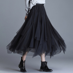 【歌铭】高腰显瘦半身裙2022春季新款纱裙中长款包...