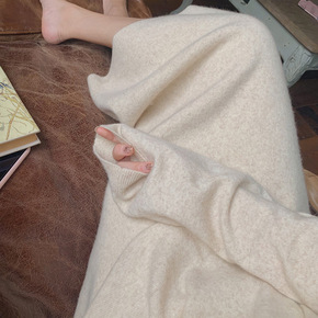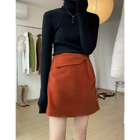 代发一片式半身裙秋冬新款毛呢半裙高腰2021不规则...