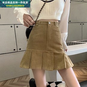 复古灯芯绒半身短裙女2021秋冬韩版高腰显瘦包臀通...