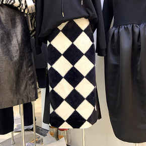 SZE STU水貂绒半身裙女秋冬季新款百搭包臀裙蝴...