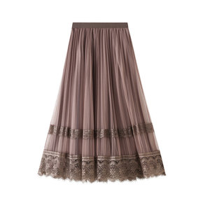 两面穿金丝绒蕾丝网纱半身裙女2021秋冬百褶裙高腰...