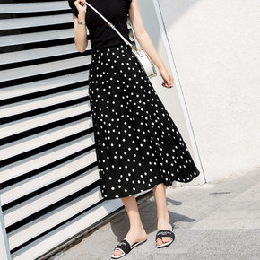 半身裙女雪纺波点中长款2020半裙黑色高腰a字显瘦...