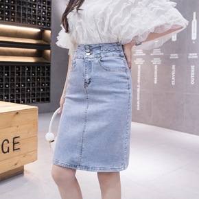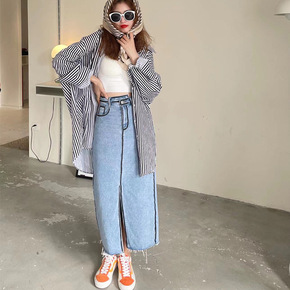 【陆续发 韩版开叉牛仔裙半身裙中长款2022春季新...