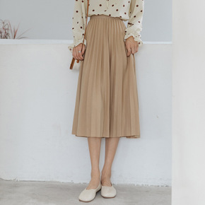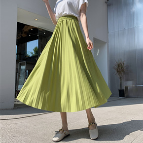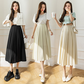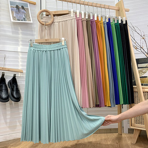 实拍 中长款百褶半身裙女2022春夏季新款高腰显瘦...