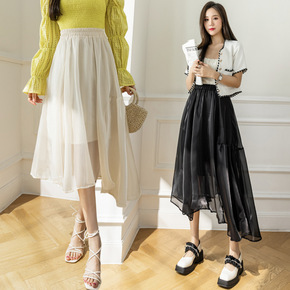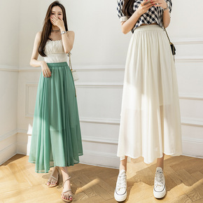 实拍雪纺半身裙女2022新款春夏季松紧腰百搭长款百...