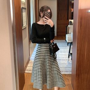 网红 2022夏宽松复古A字气质半身裙优雅松紧腰设...
