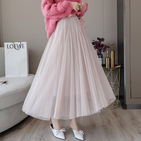 百褶纱裙女2022春夏长裙脚踝仙气半身裙中长款a字...