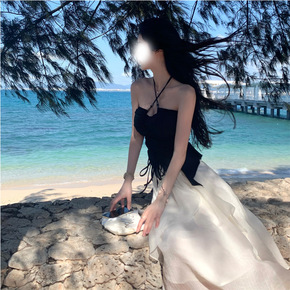2022新款女高腰显a字仙女瘦提花大摆百褶蝴蝶结网...