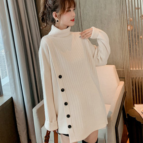 中长款套头高领毛衣女2021秋冬新款宽松时尚设计感...