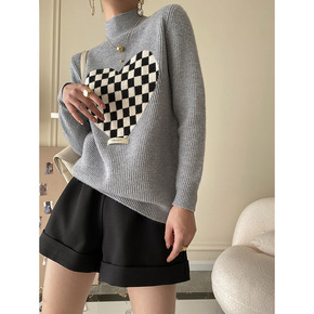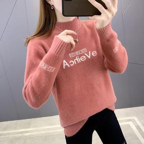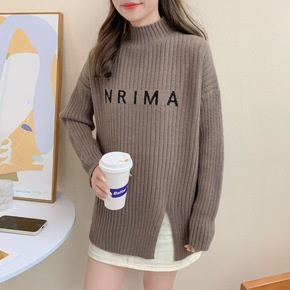 实拍韩版2022年春季新款毛衣女宽松外穿字母半高领...