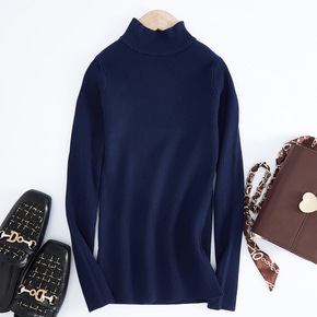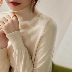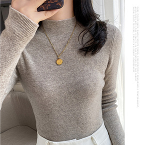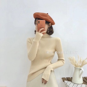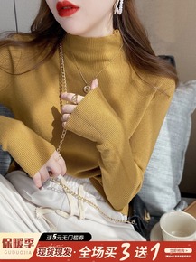 2021秋冬新款半高领修身厚款针织衫内搭纯色羊毛打...