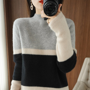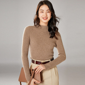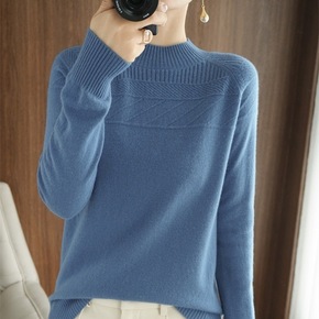 品牌单纯羊毛针织衫毛衣女2021秋冬季新款内搭半高...
