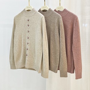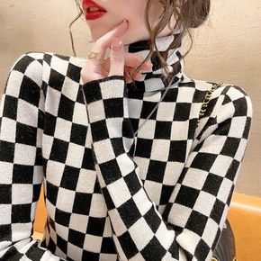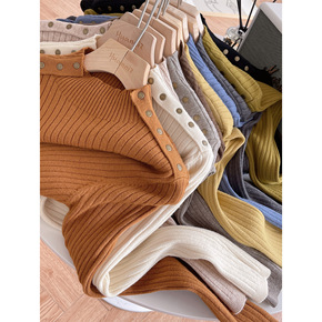 冬洋气半高领钉扣坑条针织打底衫柔软保暖弹力修身显瘦...