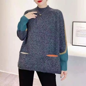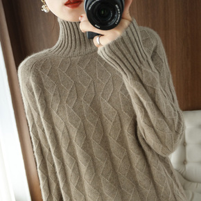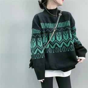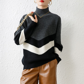秋冬季2020年新款羊毛衫女宽松套头针织半高领打底...