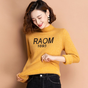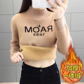 女士半高领一体绒全身加绒毛衣女冬加厚2021新款洋...