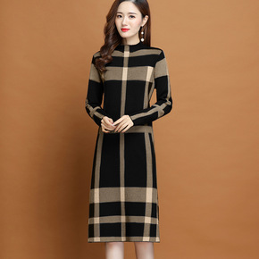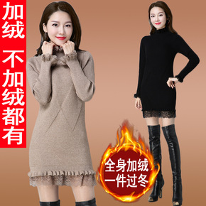 连衣裙女中长款秋冬加厚保暖毛衣半高领针织衫韩版新款...
