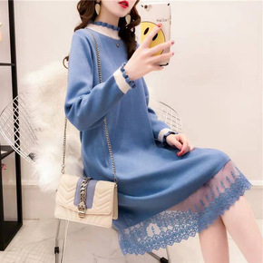 2020秋冬新款针织半高领毛衣女宽松连衣裙荷叶边蕾...