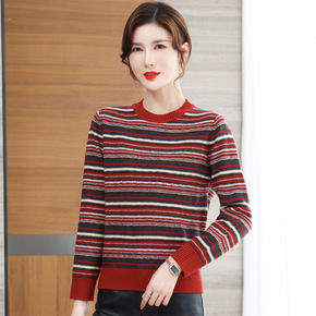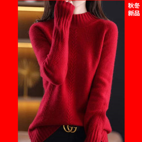 秋冬红色羊毛针织气质通勤韩版套头长袖半高领宽松厚本...