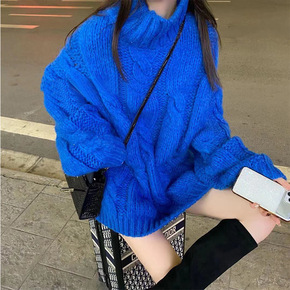 秋冬菠萝针套头厚毛衣女2021新款慵懒风宽松纯色半...