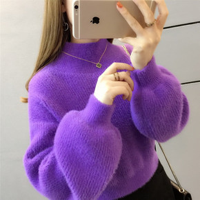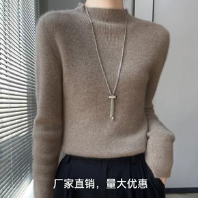 羊绒衫毛衣女秋冬加厚纯色打底内搭短新款半高领羊毛衫...