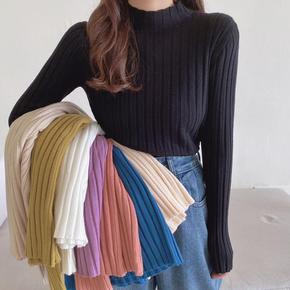 短款半高领打底衫女秋冬修身显瘦高腰针织上衣小个子内...