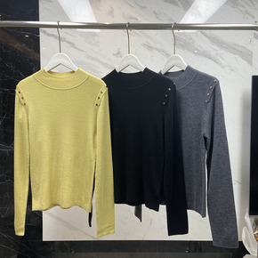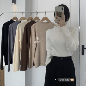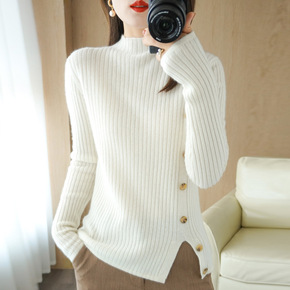 秋冬新套头毛衣女半高领侧边扣子开叉针织衫修身内搭长...