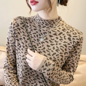 【抗起球】新款秋冬宽松显瘦毛衣女性感豹纹百搭打底衫...