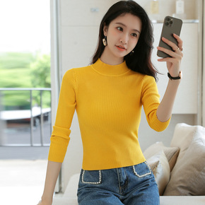 秋冬毛衣女2021新款半高领百搭套头修身显瘦内搭打...