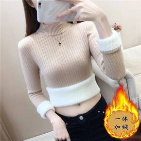 秋冬新款半高领内搭长袖针织打底衫女紧身毛衣洋气贴身...
