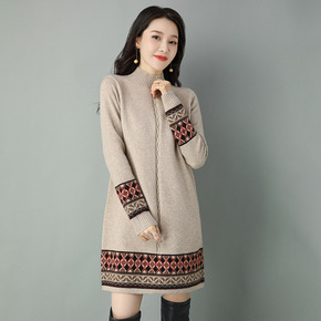 2021秋冬新款大码毛衣女韩版宽松中长款打底连衣裙...