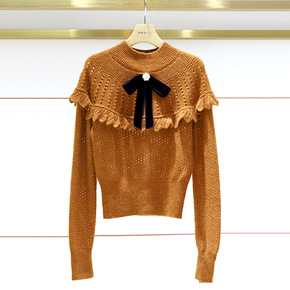 2021冬装新品半高领镂空蝴蝶结长袖休闲套头针织衫...
