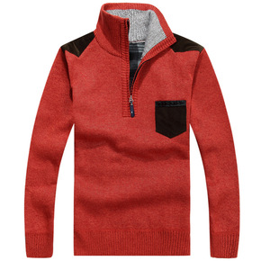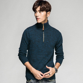秋冬新款男式毛衣拉链立领时尚针织衫纯色半高领休闲男...