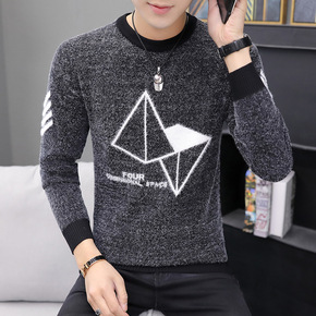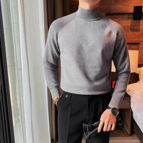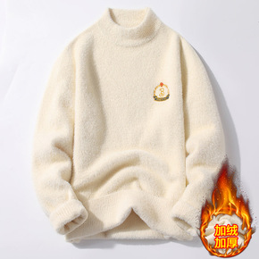 2020冬季男士套头仿貂绒毛衣半高领纯色针织衫时尚...
