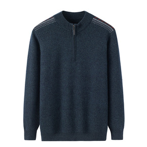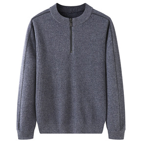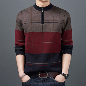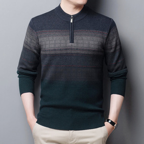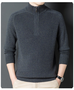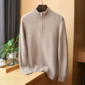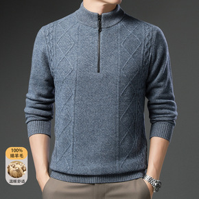 男装毛衫 秋冬加厚花纹包芯纱柔软毛衣 半高领拉链保...
