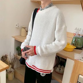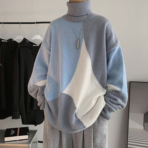 拼色情侣毛衣男冬季厚款圆领韩版宽松潮流慵懒港风毛线...