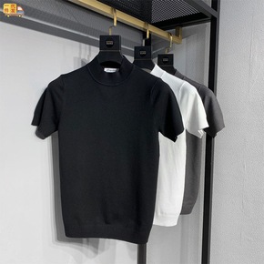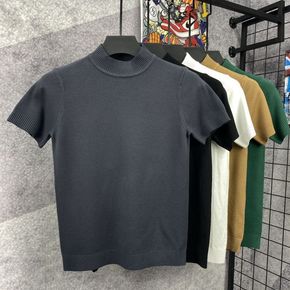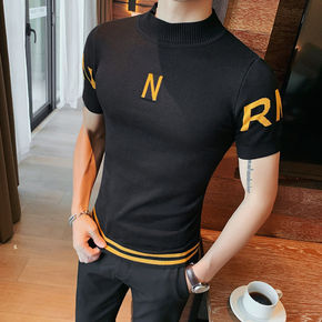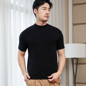 男士秋冬新款短袖针织衫半高领修身青年毛衣纯色简约打...