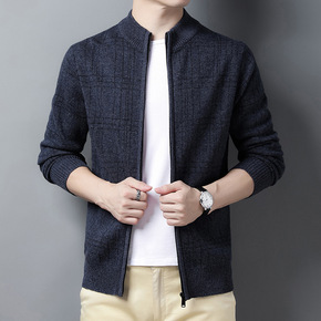 2021春秋季新款男士休闲时尚拉链羊毛开衫中青年纯...