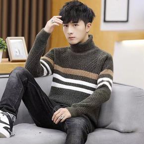 男士毛衣季加厚半高领保暖长袖毛线衣学生韩版修身针织...