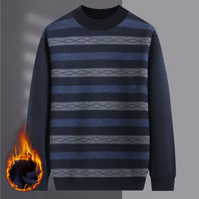 【加绒加厚】半高领毛衣中老年人男装爷爷针织打底衫冬...