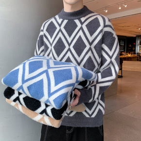 法曼斯/毛衣男加绒加厚冬季2022新款韩版潮流半高...