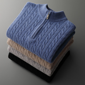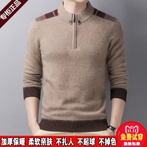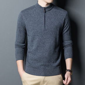 100%纯羊毛衫男中青年加厚保暖拉链中高领毛衣打底...
