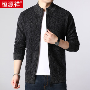 2020秋季青年男士针织开衫韩版中厚毛衣外套型男纯...