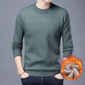 冬季青年男士套头加厚毛绒一体针织衫男式半高领加绒毛...
