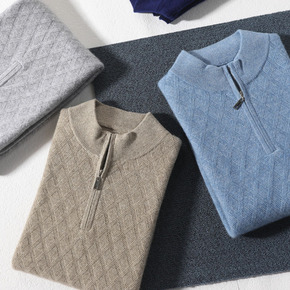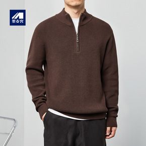 三岛男装羊毛衫男 中老年爸爸装拉链半高领长袖毛衣羊...