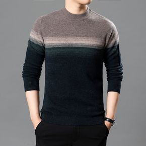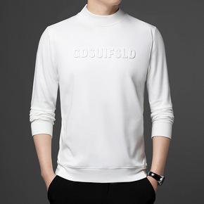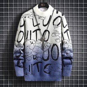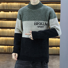 毛衣男圆领针织衫半高领字母印花拼色加厚上衣打底衫秋...