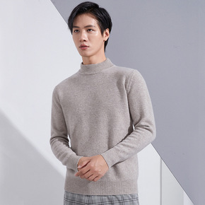 新席编100纯羊毛衫半高领毛衣男秋冬全羊毛打底青年...