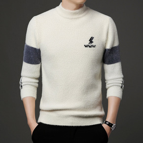 秋冬季水貂绒毛衣男士半高领针织衫加绒加厚青少年保暖...