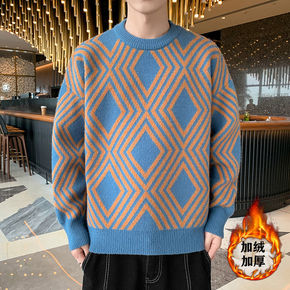 2021秋冬新款跨境时尚抓绒男装针织衫亚马逊欧码男...