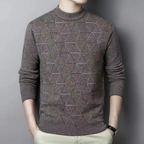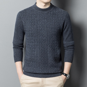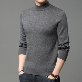 2022男士秋冬加厚全羊毛衫毛衣半高领男针织衫10...