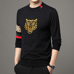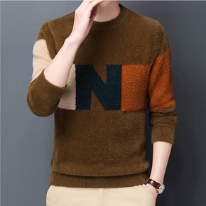 秋冬季新款男士水貂绒针织衫 中青年休闲套头男装毛衣...